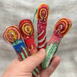 Candles! An embroidery sampler that when complete you can sew into four festive holiday ornaments, perhaps with customized messages of love on the backside. Basic Instructions included. This sampler includes four Candles for you to embroider by hand.